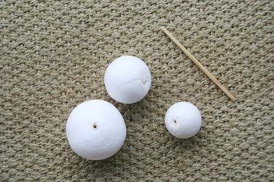 A hurkapálcából letörünk egy valamivel kisebb darabot, mint amekkora együtt a három golyó. A középső méretű golyót teljesen átszúrjuk (ehhez kell valami hegyes eszköz), majd a hurkapálcát beszúrjuk a legnagyobb golyóba, ráhúzzuk a középsőt, a tetejére pedig a legkisebbet.