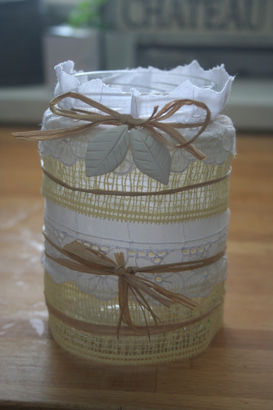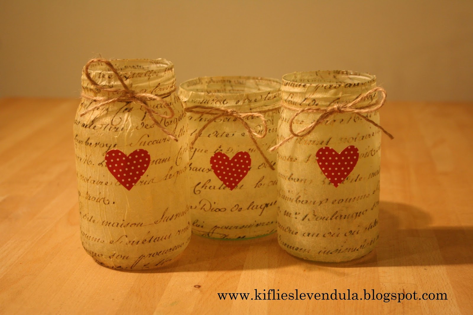 Szilikonpecsét-készletemből (ezeket is gyűjtöm...) két mintát nyomtam az üvegre, majd a palack nyakát beragasztóztam, és körbetekertem spárgával.