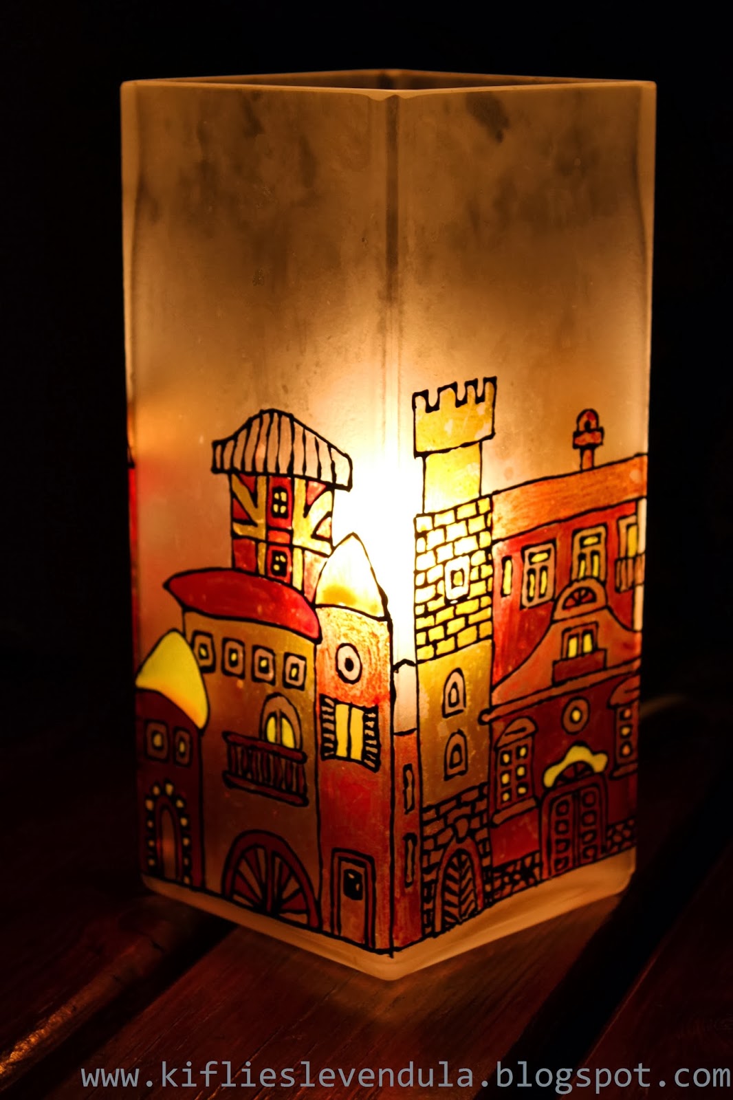 Ezt a lámpatípust egyébként legutóbb már nem láttam az Ikeában, de máshol találkoztam nagyon hasonló hasáb formájú üveglámpákkal, ezek nagyszerűen megfelelnek dekorációs alapnak, akár dekupázsoláshoz is, de megfesteni is nagyon könnyen lehet őket - ezzel az üvegmatrica-festéses technikával pedig még az elrontás lehetősége is kizárt. :-)