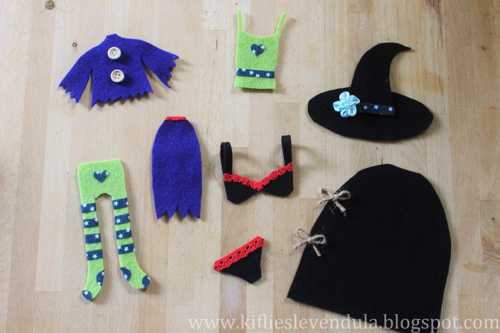 Majd kivágtam a ruhatár darabjait, ahogy elképzeltük, mit is hord egy boszorka a köpenye felett és alatt :-)