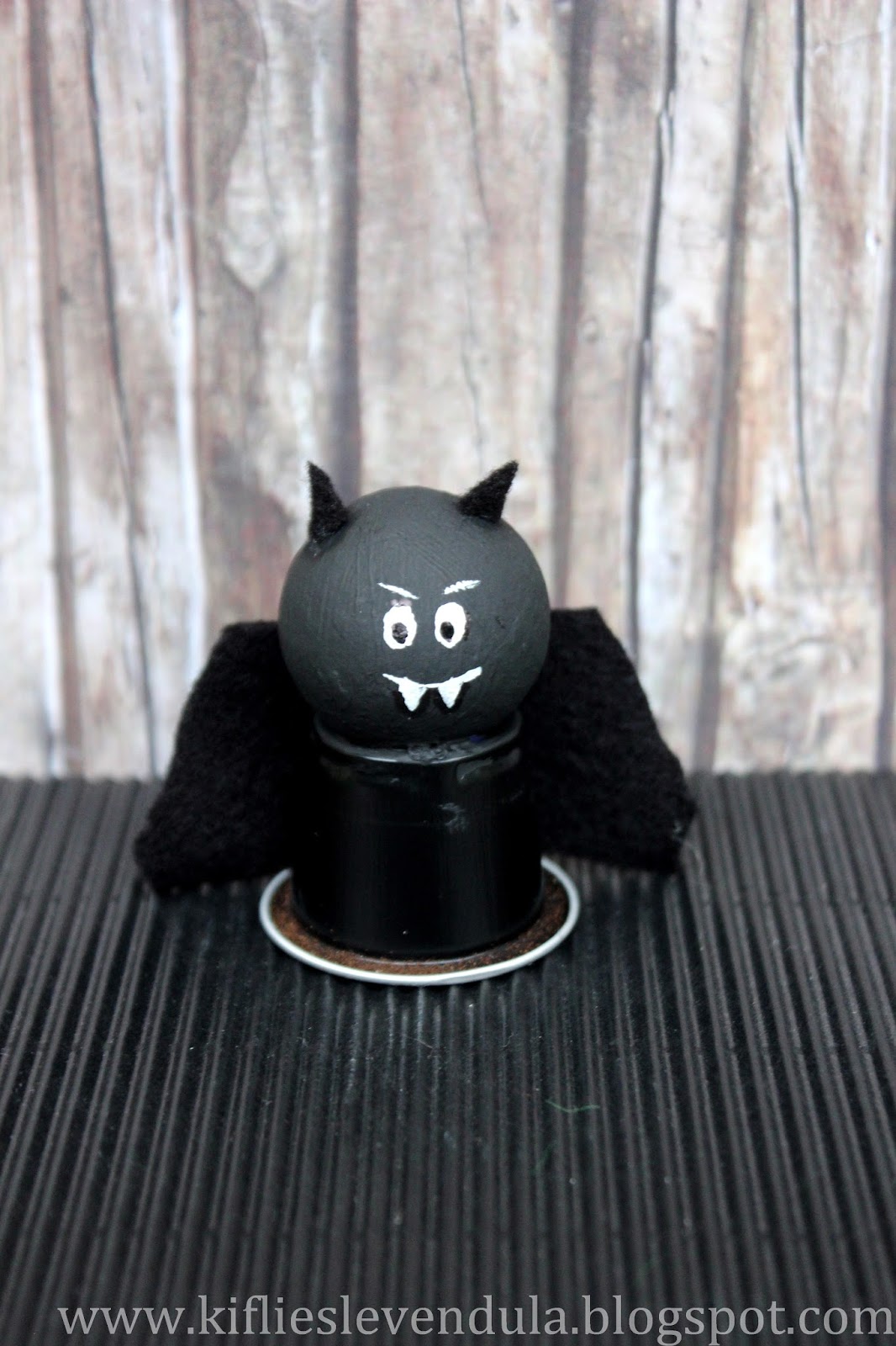 A denevér sem maradhat el egy ilyen rémes társaságból: a szárnya fekete filcanyagból készült, a feketére festett papírgolyó fejet pedig fehér akrilfestékkel dekoráltam: