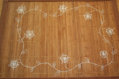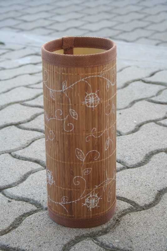 Ezzel készen is lett a hevenyészett vázám. A tányéralátét így szinte bármire rátehető, és elleplezi a legegyszerűbb uborkás üveget is, a műanyag palackokról nem is beszélve. Ha épp nincs kéznél vagy szabadon egy kulturált váza, illetve egy olyan spontán üvegtördelő kisfiú van a közeletekben, mint az én Kisebbikem, akkor mindenképpen jól tud ez jönni :-)