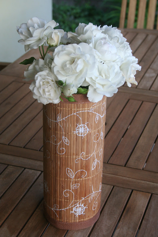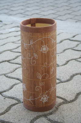 Szóval, miután a legutóbbi virágcsokrok érkezésekor kaptam egy intenzív dührohamot, hogy már megint sehol egy nyamvadt váza sem, elhatároztam, hogy készítek egy olyan borítót, amit bármilyen befőttesüvegre vagy műanyag palackra rá tudok húzni, és máris van egy instant vázám. Fontos szempont volt a helytakarékos tárolhatóság is, úgyhogy alaposan átgondoltam a dolgot, majd le is gyártottam a prototípust, és mostantól rá sem hederítek a kommandós vázákra. :-)