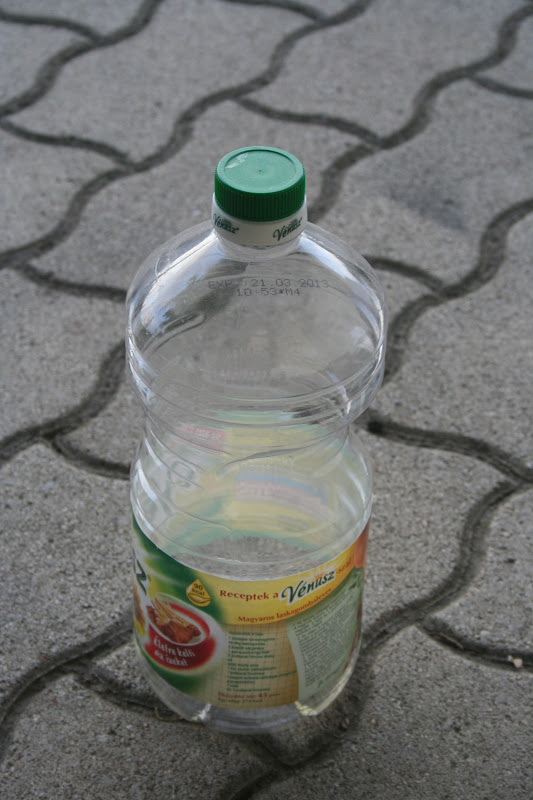 Kerestem egy kiürült olajos flakont, levágtam a tetejét és kimostam: