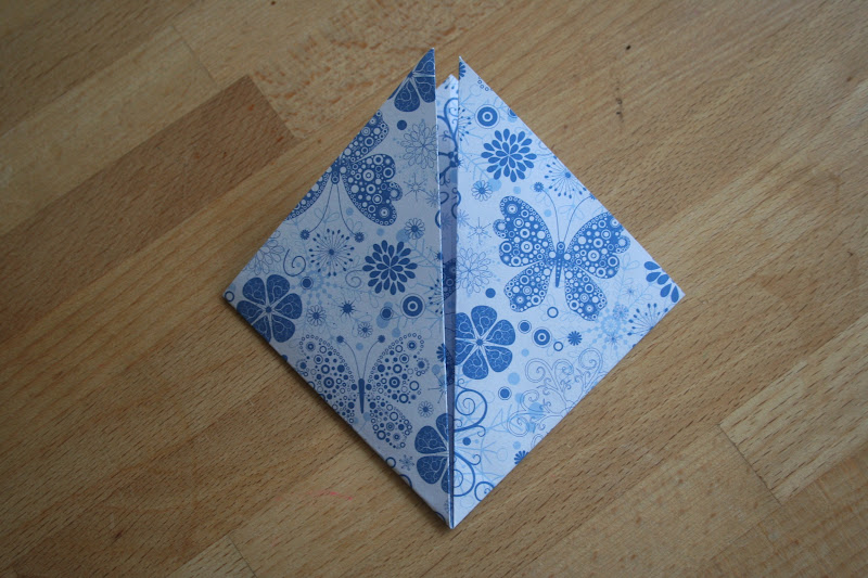 Széthajtjuk, és a másik átló mentén is félbehajtjuk ugyanígy: