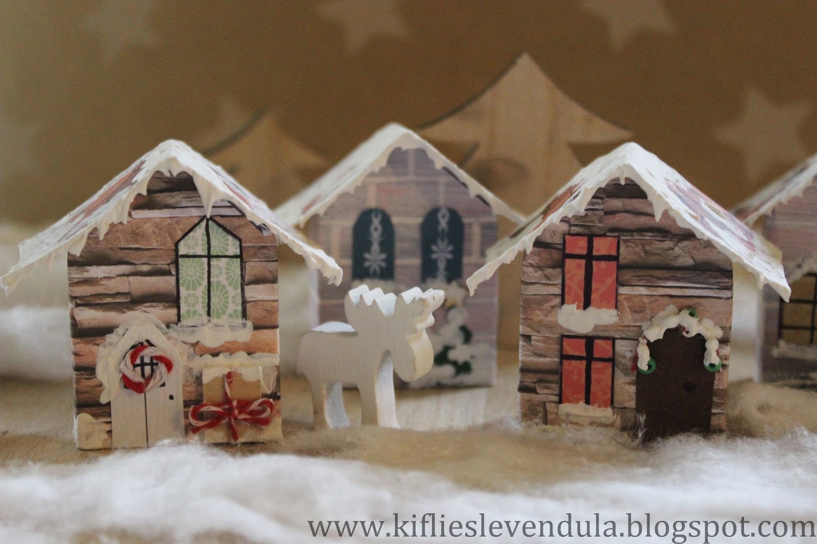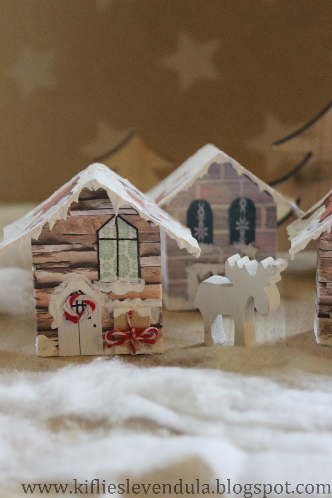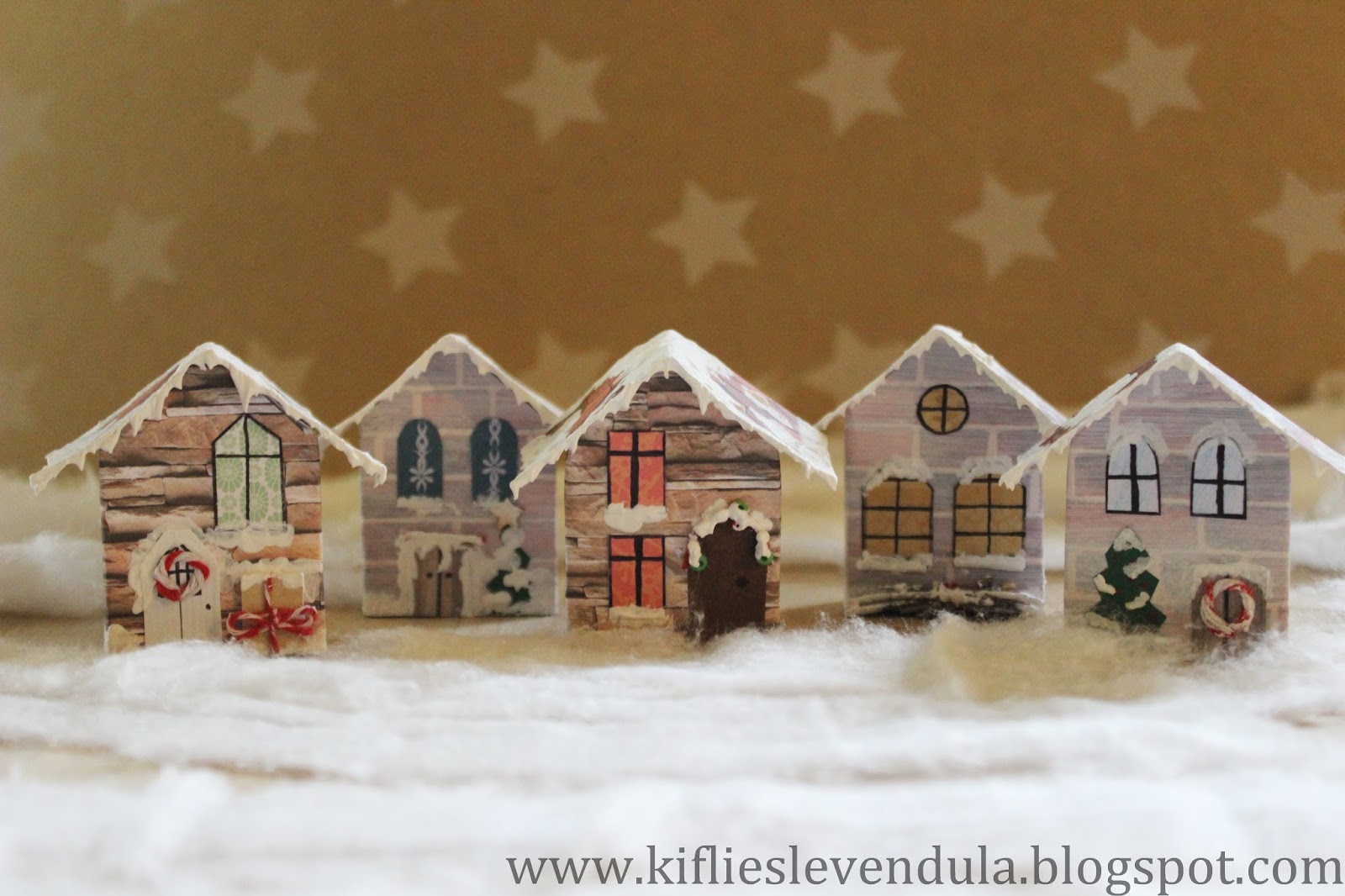 Hogy ne árválkodjon egyedül a házikó, még készítettem néhányat - már majdnem egy egész kis téli falu :-)