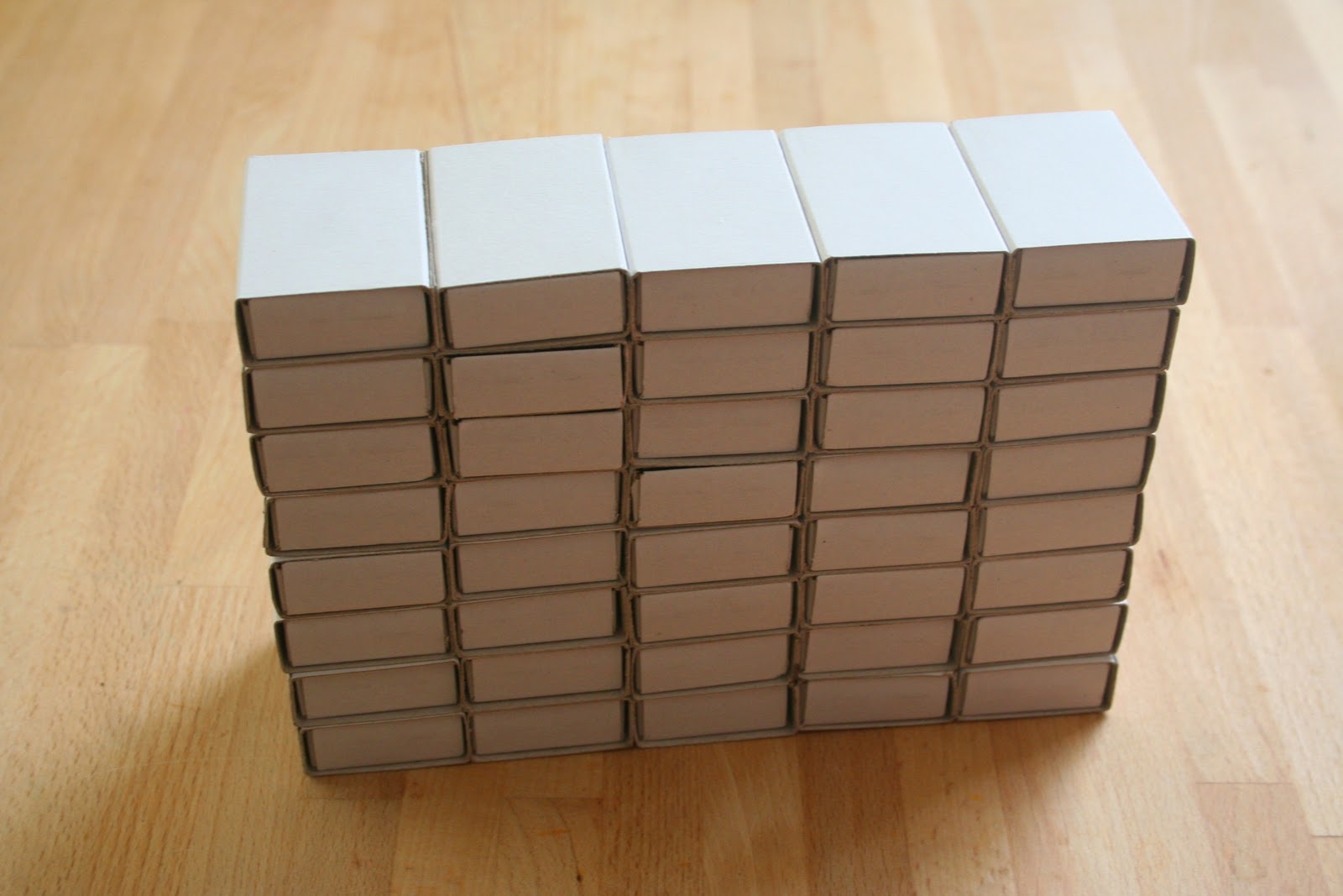Mivel nálunk senki sem dohányzik és villanytűzhelyünk van, nagyon kevés üres gyufásdoboz keletkezik, úgyhogy kreatív boltban vettem egy adag fehér gyufásdobozt - szerencsére egyáltalán nem vészes az áruk, és így legalább nem kellett várnom a dobozkák összegyűlésére.
