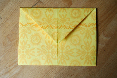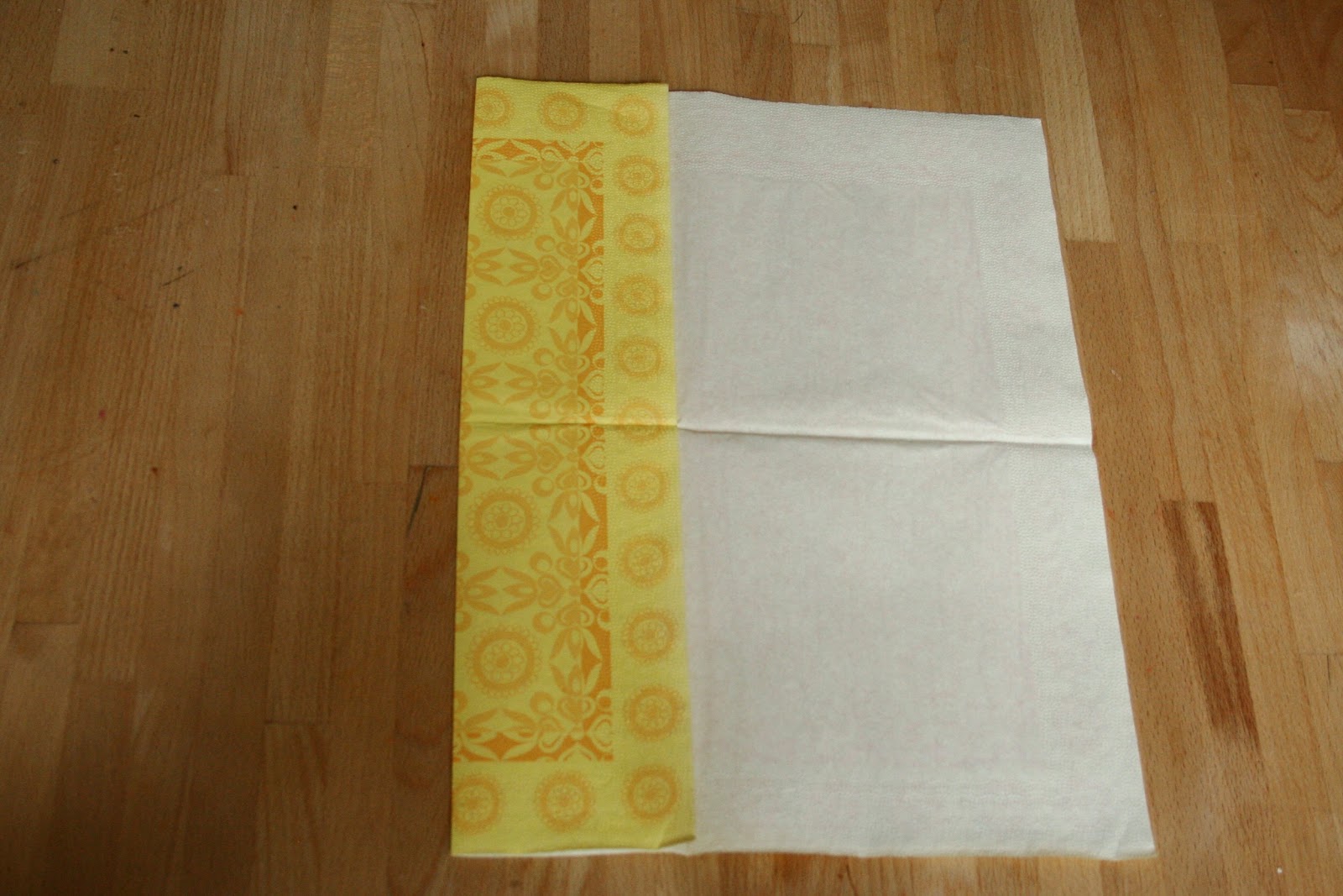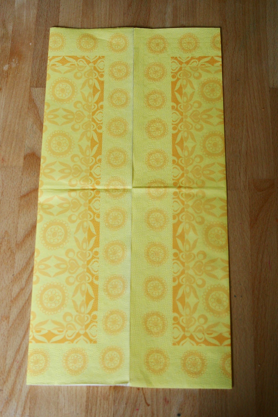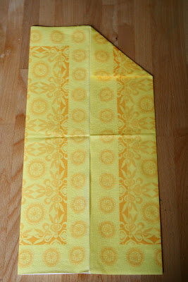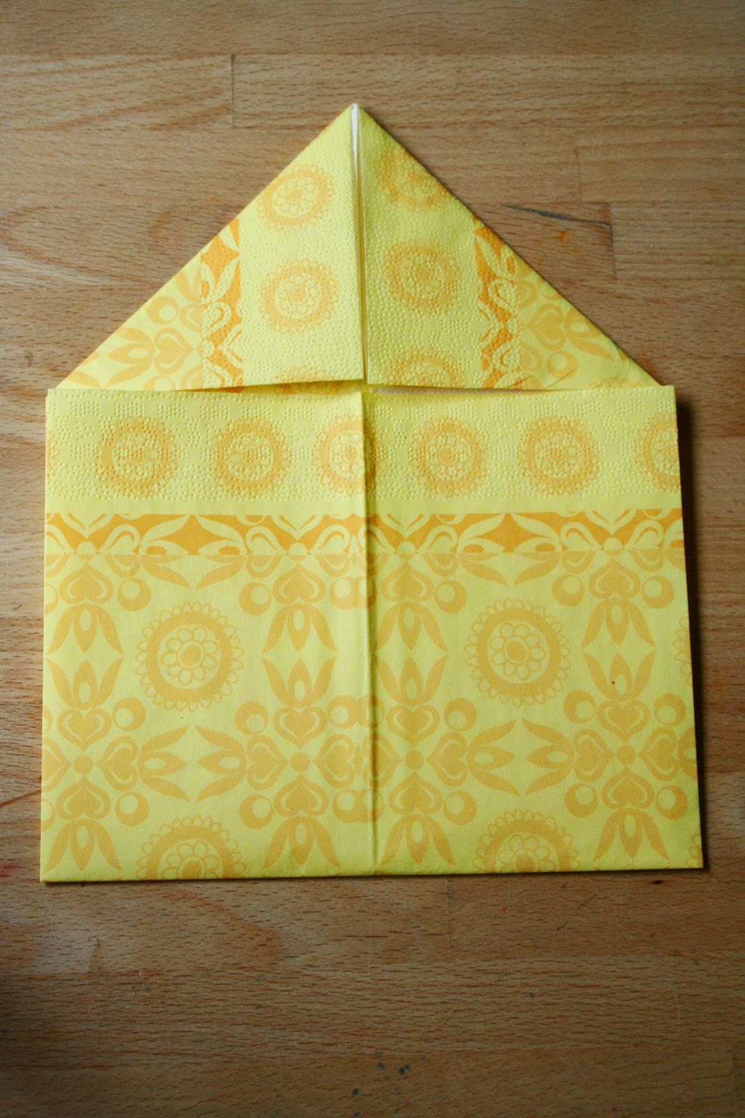 Most fogtam a gurigát, és ellapítottam úgy, hogy felső, két kis egyenes papírvég egymásra kerüljön. Ez elfektetve így néz ki: