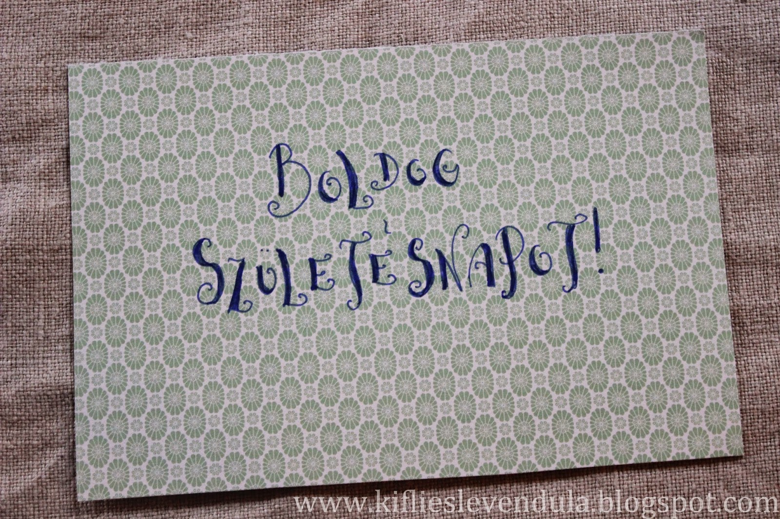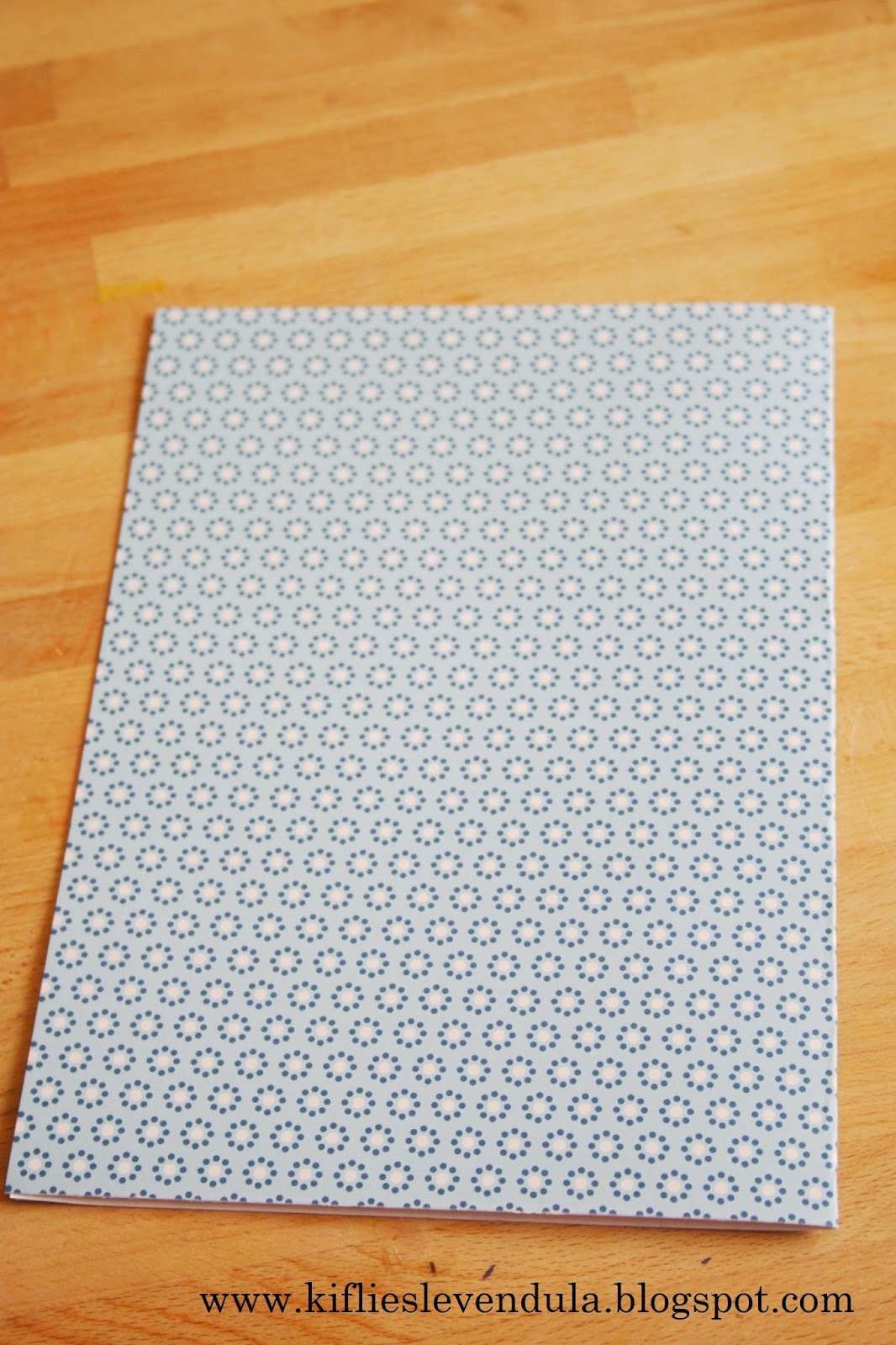 A következőképpen haladtam: a képeslapot - sablonként használva - kinyitva a mintás kartonra helyeztem, körberajzoltam, kivágtam, majd félbehajtottam. Az alappal együtt összesen négy képeslapom lett így.