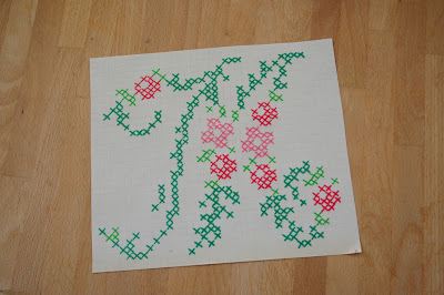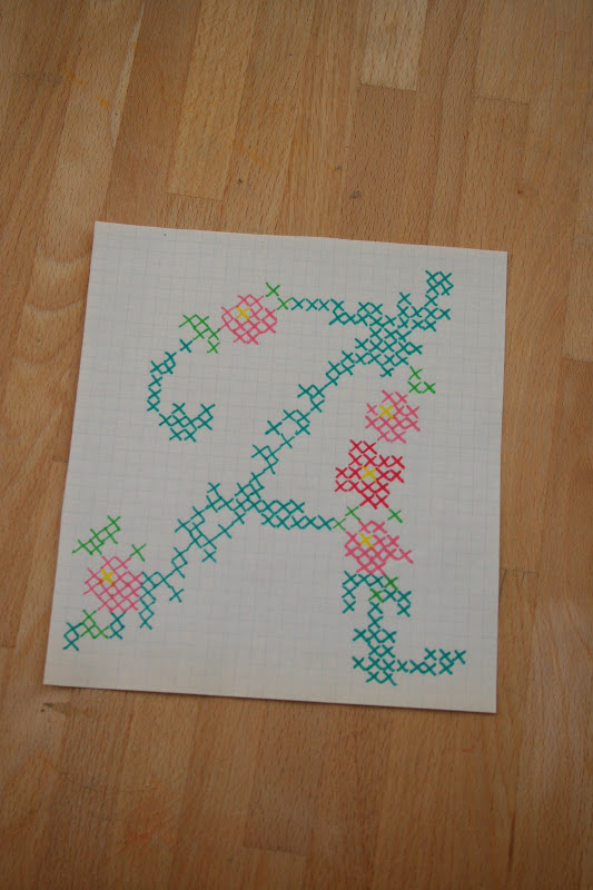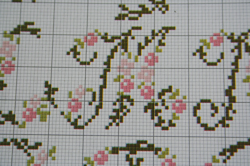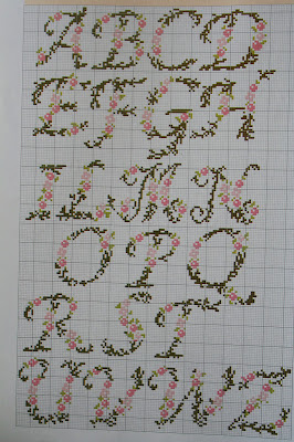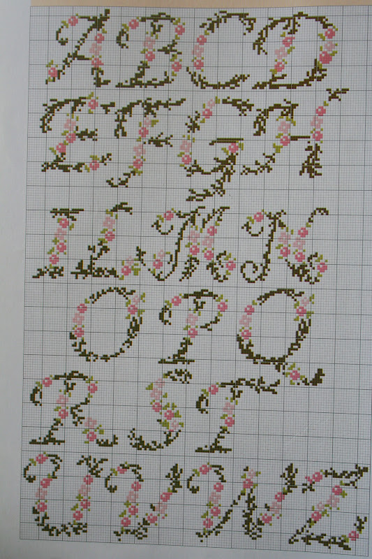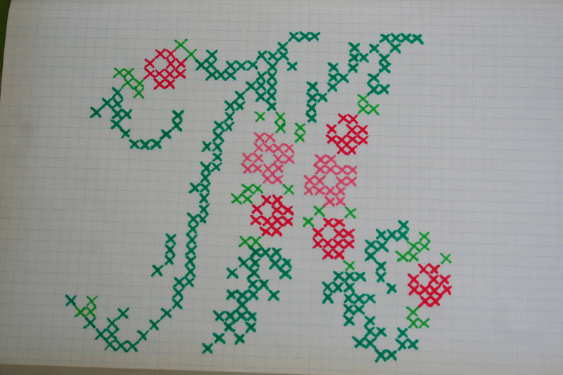 Pár hónappal ezelőtt találkoztam egy fantasztikus ötlettel itt: http://ashimmeringstar.blogspot.hu/2012/01/cross-stitch-wall-art.html. Ez lényegében arról szólt, hogy egy keresztszemes rózsaminta úgy került a falra, hogy egyszerűen csak felfestette a dolog kiötlője a színes x-eket. Már első olvasásra is kivételesen kreatív ötletnek éreztem, és azóta is foglalkoztatott... és amikor múltkor a kezembe kerültek a Modern Keresztöltés című (abszolút kedvenc) újság lefűzött számai, amelyben egy különlegesen szép, romantikus mintájú abc-re bukkantam, rögtön tudtam, én ezt fogom megvalósítani ezzel a rendkívül ötletes, mégis pofonegyszerű technikával.