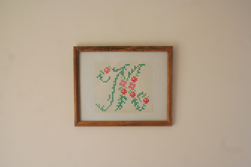 Alapként egy régi, üveg nélküli képkeretet vettem elő, amit korábban már a korábbi rikító színről festettem át erre a semleges krémszínűre: