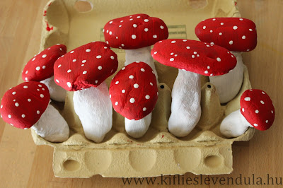 Száradás után pedig a gombák szárát festettem fehérre, két rétegben - a rétegek között hagytam teljesen megszáradni a festéket.
