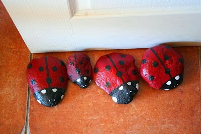 Ha a kezetek ügyébe akad néhány nagyobb kő, fessetek belőle katicát, és használjátok ajtótámasztóként... :-) Csak akrilfesték kell hozzá, és a végén nem árt neki egy lakkréteg - és persze mást is rá lehet festeni, arcokat, üzenetet, rajzfilmfigurát, akármit - lakásavatóra is személyre szabott ajándék lehet.
