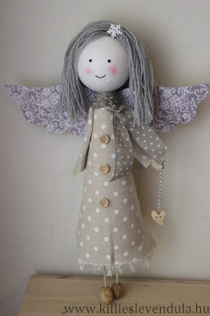 Minden évben készül nálunk egy karácsonyi angyal, aki aztán fontos helyre kerül, és társaságával végigkíséri az ünnepet. Vannak évek, amikor pár perc alatt születik az angyalka, és van, amikor több időbe telhet az elkészítése, ez mindig a lehetőségektől függ. A fontos csak az, hogy legyen, és hogy ne legyen ugyanolyan, mint a korábbi években készülő társai.