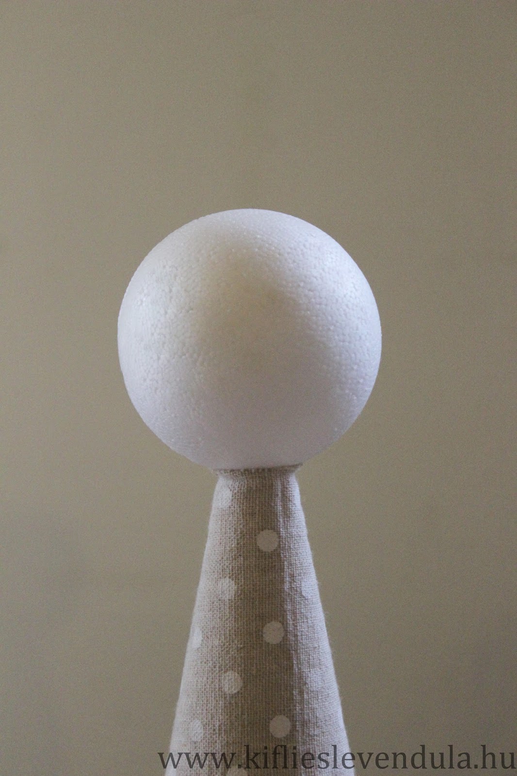 Az angyalka alapját egy 20 cm hosszú hungarocellkúp képezte, a fejét pedig egy 7 cm átmérőjű hungarocellgolyó.