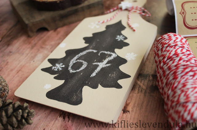 Még 65 nap van karácsonyig, illetve azt is mondhatnám, már csak 65 nap van karácsonyig - ez olyan félig tele-félig üres a pohár dolog. Én azok közé tartozom (mint ahogy azt Ti már pontosan tudjátok), akik a "már csak" tábor tagjai, és épp ezért számon is tartom mindig, mennyi az az annyi pontosan. Minden évben van egy visszaszámlálónk is, amire a gyerekek írják fel a hátralévő napokat, és a tavalyit annyira szerettük, hogy idén nem is volt tervben egy új készítése - de aztán végül csak lett, megint csak itthon megtalálható alapanyagból, egészen pontosan egy használaton kívüli vágódeszkából.
