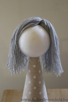 Világosszürke fonalból hajköteget ragasztottam a fejre: