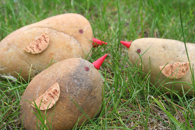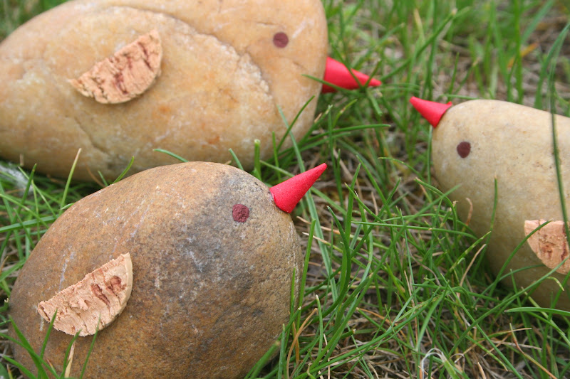 Igazából bármi készülhet a kavicsokból, ezért is nagyon jó alapanyagok: ahogy kézbe veszünk egyet, elkezdenek a gondolatok formálódni, és hamarosan meglátunk benne valamit, amit aztán megpróbálhatunk valósággá változtatni. Igaz, én mostanában valahogy mindenben nyuszikat látok: amikor legutóbb a kezembe kerültek a múltkor gyűjtött kavicsok, az egyikben kis megszeppent nyulat láttam, a másikban egy eléggé bamba, nagy fülest - így aztán a kavicsokból végül egész nyúltömeg lett, mert nem erőltettem a gondolatok más irányba történő terelését. :-)