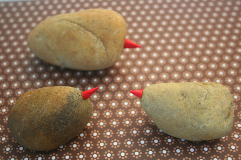 Aztán már csak alkoholos filccel kellett tennem egy-egy pöttyöt szemeknek, és készen is lettek a kis kőmadarak.