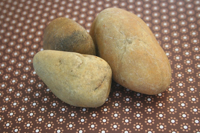 A nyuszik alapanyagául szolgáló kavicsok teljesen átlagos, útközben itt-ott gyűjtögetett, különféle alakú, színű és méretű darabok voltak - persze lemostam és egy szivaccsal alaposan átdörgöltem őket: