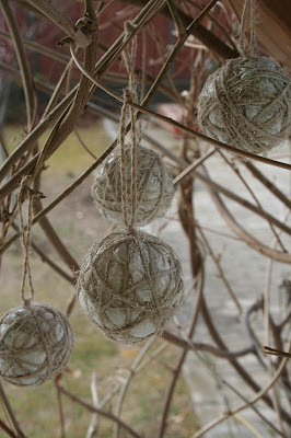 Bármilyen kültéri helyre felakaszthatjuk, semmilyen kár nem fog bennük esni: ha a fehér festékbevonat egy része lepereg az igénybevétel hatására, azzal nem érdemes foglalkozni (ha nem tekergettük eléggé körbe a spárgával, a zacskófelület túlságosan puha és hajlékony lesz a merev festékréteghez képest), mert így is marad rajta bőségesen, és pontosan ugyanannyira szépek lesznek a gömbök utána is.