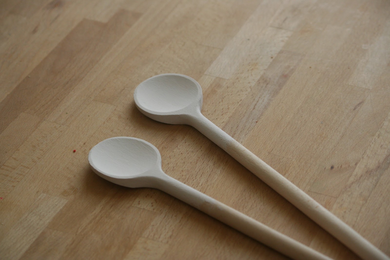 Első lépésként lefestettem a fakanalak tetejét fehérre akrilfestékkel.