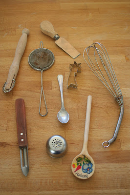 Legutóbb akkor idéződött fel bennem az egész, amikor egy áruházban elmentem egy kupac leértékelt 2012-es naptár mellett. Meg is álltam, és olyan hosszasan meredtem a naptárakra, hogy végül odajött az eladó, és megkérdezte, melyiket kérem. Mondtam, hogy egyiket sem, csak intenzíven inspirálódtam - szegény, azt gondolhatta, egy újabb hibbant, akinek kiszivacsolta az agyát a plázázás... pedig ott és akkor tényleg csak az futott bennem végig, hogy de szép is volt az a régi naptár - milyen gyönyörű régi konyhai eszközök voltak a képein - de jó lenne, ha én is tudnék ilyen képeket készíteni - de ennyi selejtes és régi konyhai izém nincs is otthon - de talán anyunak van? - ha lenne, akkor készíthetnék ilyen képet - de akkor már nem is fotót, hanem egy igazi 3D-s képet - és ezen a ponton lépett közbe az eladó, úgyhogy a folytatást már otthon gondoltam ki. Azonnal meg is kértem anyukámat, selejtezzen egy kicsit a konyhaszekrényben, hátha az övéivel és az enyémekkel együtt összejön egy képrevaló...