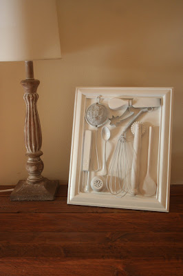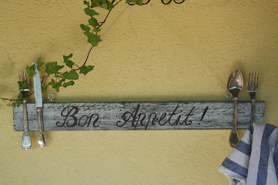 Ezután már csak a kampókra kötöttem a felakasztásra szolgáló drótot, és ezzel el is készült a franciás hangulatú konyhai dekoráció... ami remélem, tetszeni fog az ünnepeltnek :-)