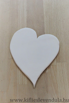 Egy éles kés vagy más vágóeszköz segítségével kivágunk a gyurmából egy szabálytalan szívformát: