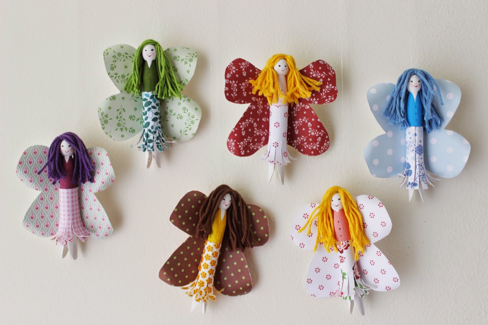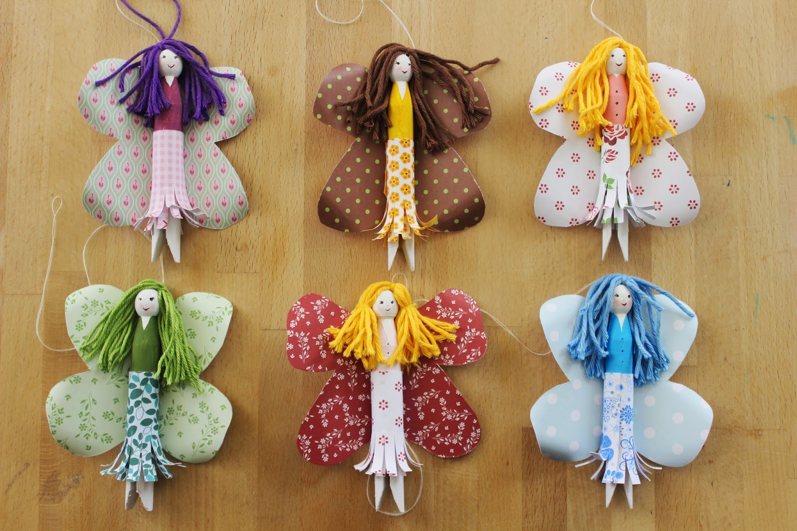 Nemrég a kezembe akadt egy doboz ruhacsipesz maradéka, amit még régebben vettem, kreatív célra - azok a régi stílusú, kerek fejű csipeszek, amelyekből egyértelműen valamilyen figurát kell készíteni, bár én használom őket rendeltetésszerűen is, mert igazi békebeli hangulatot kölcsönöznek a száradó ruháknak. :-) Mindenesetre most arra gondoltam, néhány csipeszből tündéreket készítek a gyerekeknek, amelyeket aztán vagy fellógatunk, hogy a légmozgásban kecsesen forogjanak ide-oda, vagy egyszerűen játék céljára használunk. A széltündérek hamarosan el is készültek, és nagyon jó játékszernek bizonyultak - ráadásul mindegyiket jó hosszú hajjal készítettem, hogy a Nagyobbik mostanában annyira intenzív fodrászolási lelkesedésének is eleget tegyek. :-)
