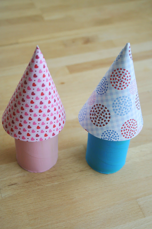 A papírtölcséreket a gurigák tetejére ragasztottam: