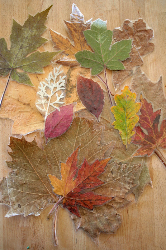Persze, mindannyian tudjuk, hogy a lepréselt és megszáradt falevél rendkívül sérülékeny - ezért minden évben hosszasan töröm azon a fejemet, hogyan tudnék a falevelekből tartós díszt készíteni. A neten olyasmit már láttam, hogy viaszba mártják a leveleket, de ez nekem egyrészt túl körülményes, másrészt ennek a megoldásnak a tartósságáról sem vagyok meggyőződve... és a Nagyobbiknak elsőbe kellett mennie idén ősszel, hogy végre megtaláljam a nekem leginkább megfelelő megoldást. :-)