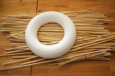 És jött! :-) Tüstént elő is vettem az utolsó hungarocell koszorúalapomat, a ragasztópisztolyomat, és nekiláttam, hogy elkészítsem ezt a bizonyos valamit.
