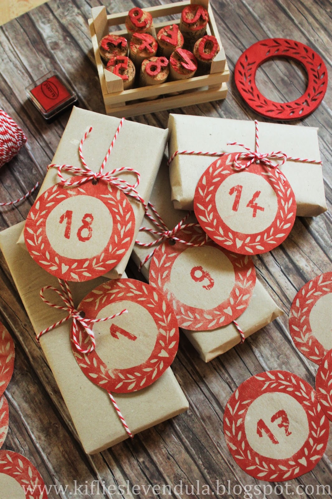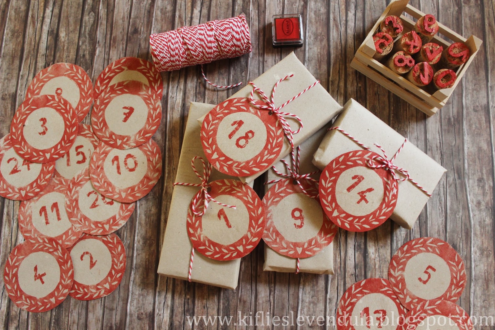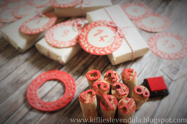 Egyszer már kísérleteztem azzal, hogy hogyan lehet házilag betűpecsétet készíteni, de most tovább haladtam a dologgal. Adventi naptárhoz lett volna szükségem számos pecsételőre (valahogyan sosem sikerül elfogadható külsejű számokat rajzolnom), de nem akartam addig költeni rá, amíg meg nem bizonyosodom arról, hogy házilag lehetetlen előállítani - de azért mégis sikerült valahogy. :-) A számok elkészítéséhez ezúttal is parafadugót használtam, de új szereplőként behoztam a dekorgumit is - és szeretem.