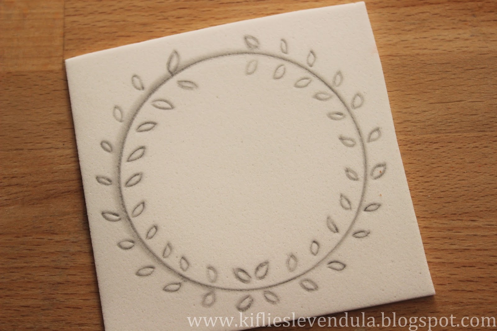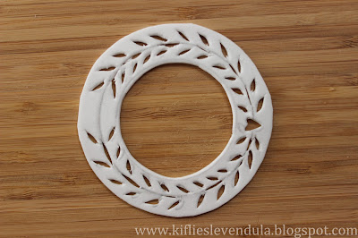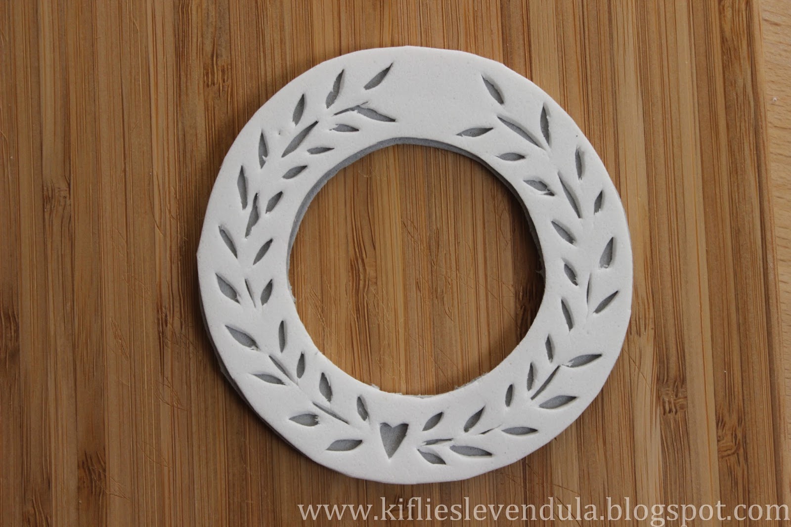 Kivágtam a barkácskéssel a levélkéket és a körvonalból néhány darabkát, majd az egészet koszorúforma-szerűen kivágtam a dekorgumiból.