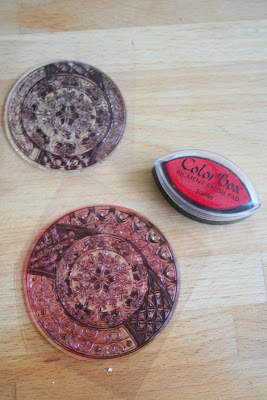Következhetett a tesztelés: a koszorúformára kis bélyegzőpárnát nyomogattam, míg a festék be nem fedte, és rányomtam néhányszor egy papírdarabra.