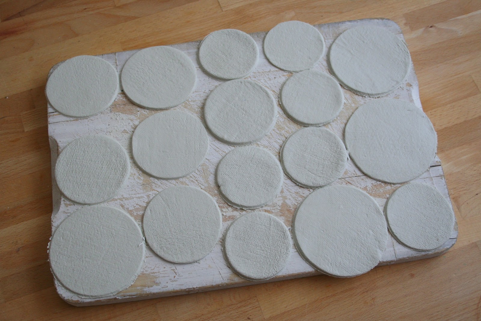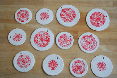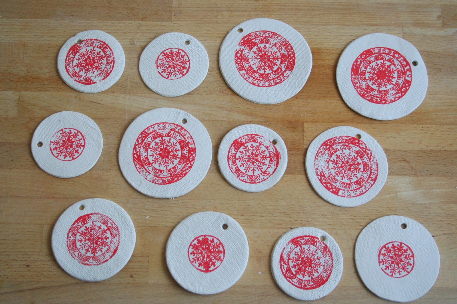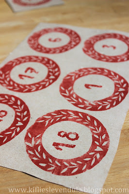 A koszorúk közepébe pecsételtem az új számbélyegzőimmel - akárcsak a korábbi betűnyomda esetében, itt is nagyon szeretem a parafa repedéseiből eredő kopottas hatást.