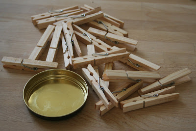 Készítsük ki a fémtetőt (szerintem egy befőttesüveg teteje is tökéletesen megteszi, legfeljebb egy fogóval beljebb kell nyomnunk a kis belső kiugrásokat) és a csipeszeket: