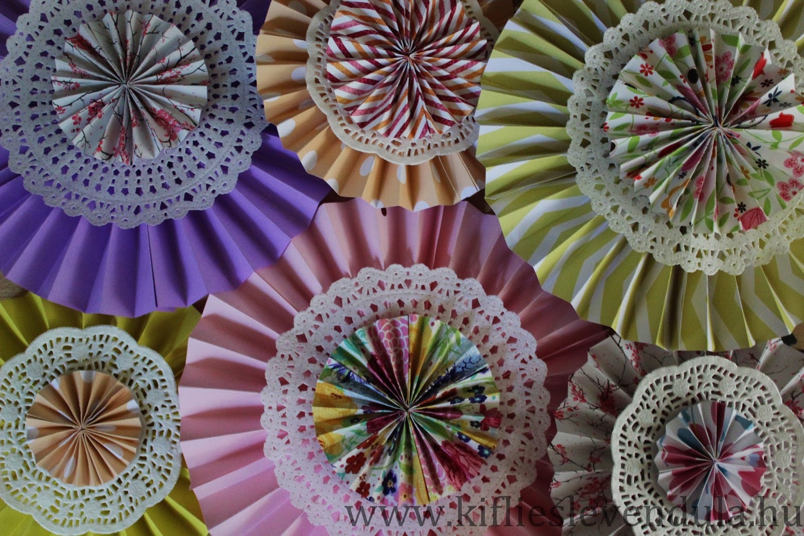 Ezek a papírdíszek sokkal látványosabbak annál, mint amennyi energiába kerül az elkészítésük. Annál pedig végképp ezerszer takarékosabb megoldást jelentenek, mint amennyiért készen lehet őket megvenni... úgyhogy mivel esküvő-, ballagás- és buliszezon van, érdemes elkészíteni néhányat, dekorálni vagy ajándékba - esetleg csak úgy magunknak, mert széééép :-)