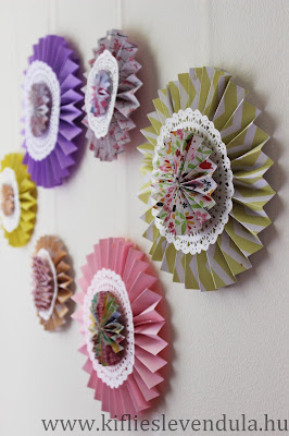 Ezekhez a díszekhez nem kell semmilyen különösebb kézügyesség, mert a harmonikahajtogatáson és egy kevés ragasztáson kívül nincs más teendő velük - a hajtogatáshoz a kisebbeket is be lehet fogni, mert ezek a körök akkor is csinosak, ha nem tökéletesen egyformák a hajtások. A gyerekek pedig garantáltan odalesznek, hogy micsoda szépségeket készítettek :-)
