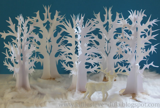 Hónapokkal ezelőtt figyeltem fel a neten egy blogon néhány papírfácskára, amelyekkel kapcsolatban az volt az első gondolatom, hogy mennyire jól lehetne velük dekorálni a karácsonyi készülődés időszakában... aztán ez az időszak egyszerre már itt is volt, azaz van. Most aztán nyugodtan tehettem egy próbát a fácskák elkészítésével, de azért nem akartam egyszerűen csak másolni az ötletet. A fácskák szerkezeti felépítését megtartottam, de meseszerűbb, ágas-bogasabb fákat szerettem volna készíteni, és az aljukat is biztosabb alapra terveztem helyezni. De úgy vágtam neki a dolognak, hogy sokkal esélyesebbnek éreztem a biztos kudarcot - úgy gondoltam, az egész túlságosan időigényes és bonyolult lesz, valamint biztos, hogy a papír sem bírja majd meg a saját súlyát. Ehhez képest lényegesen kevesebb idő alatt elkészültem a fácskákkal, mint gondoltam, egyáltalán nem éreztem bonyolultnak sem, és a papír is tökéletesen helytállt.