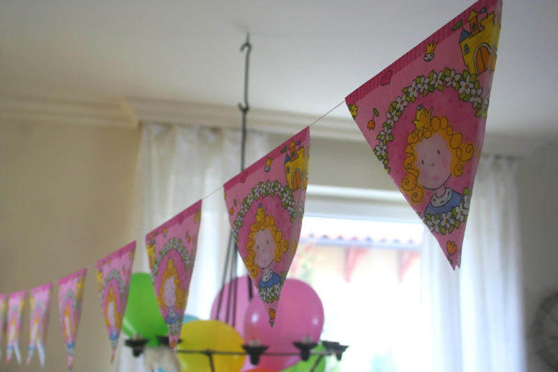Ezzel el is készült a szalvétából készült gyerekzsúr-dekoráció - nálunk alig akarta bárki is elhinni, hogy egyszerű szalvétából készült a girland, alig negyedórás munkával, én pedig még azóta sem szedtem le a dekorációt, annyira tetszik... :-)
