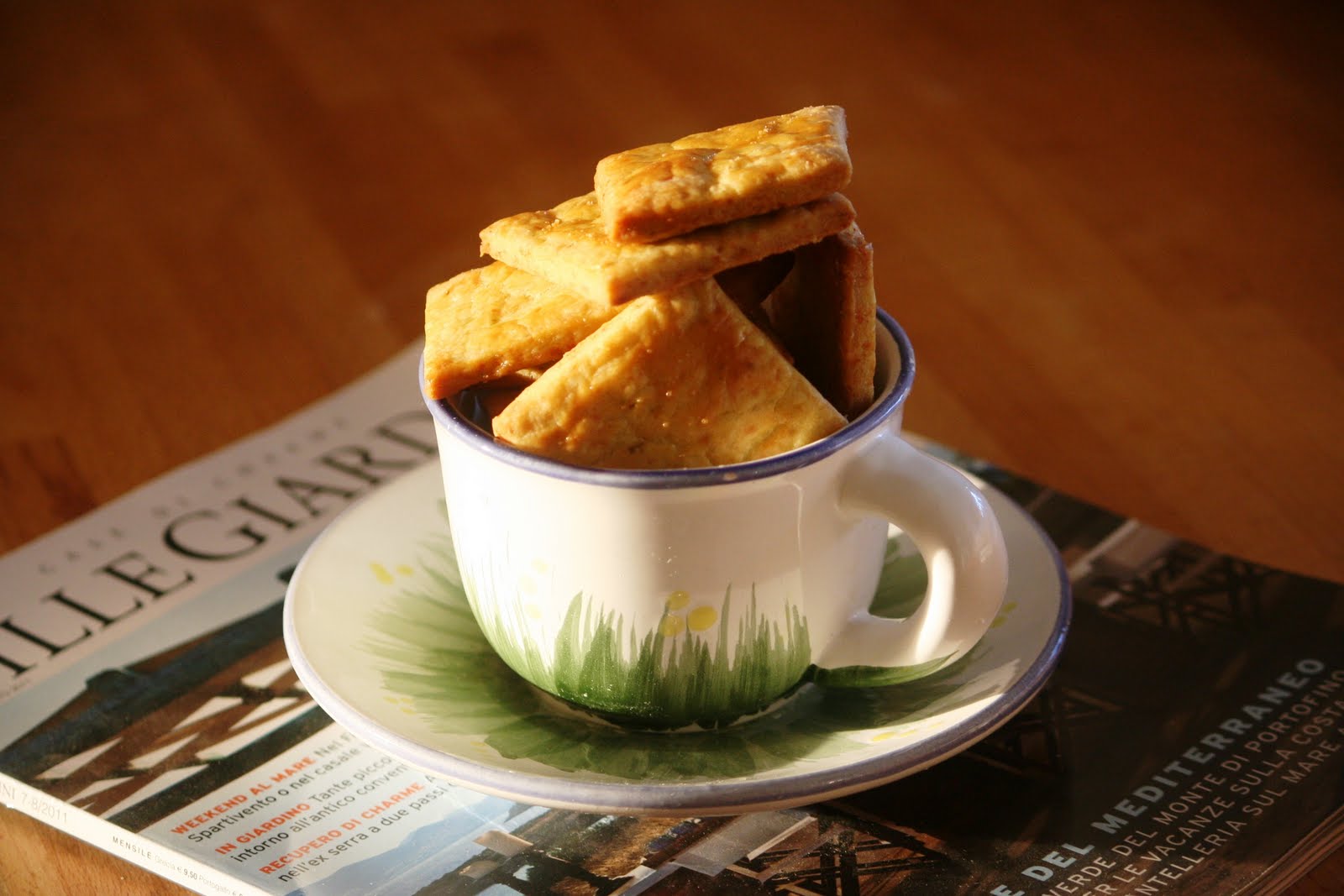 A hozzávalókat gyorsan összegyúrjuk, és egy órára hűtőbe tesszük. Ezalatt bemelegítjük a sütőt 180 fokra. A tésztát lisztezett deszkán, lisztezett gyúrófával kb. 2 mm vastagra nyújtjuk, pizzavágóval (vagy késsel) kockákra vágjuk. A kockákat sütőpapírral borított tepsibe tesszük, tetejüket egész felvert tojással megkenjük, és 12 perc alatt megsütjük.