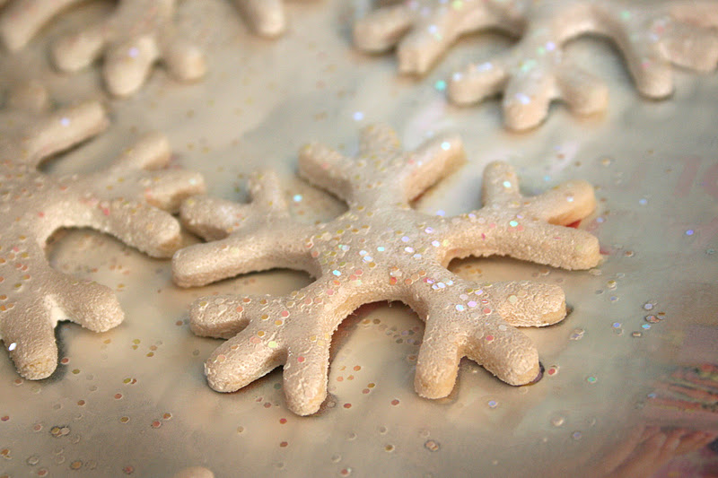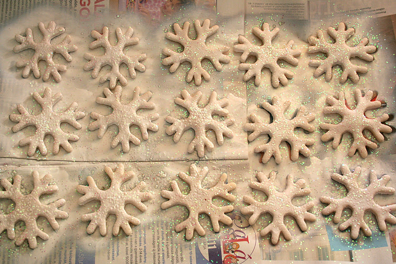 Múltkor egy csodaszépséges, hópehely formájú sütikiszúróval sikerült gyarapítani a gyűjteményt. Úgy terveztem, valami nagyon finomságos, igazi karácsonyi ízvilágú keksz készítésekor fogom felavatni... de a legutóbbi bevásárlásnál találtam a Corában egy doboz négyféle színű csillámot, igazán barátságos áron, és éreztem, hogy én bizony nem a keksszel fogom felavatni a gyönyörű hópehelykiszúrómat, hanem karácsonyfadíszt készítek vele.