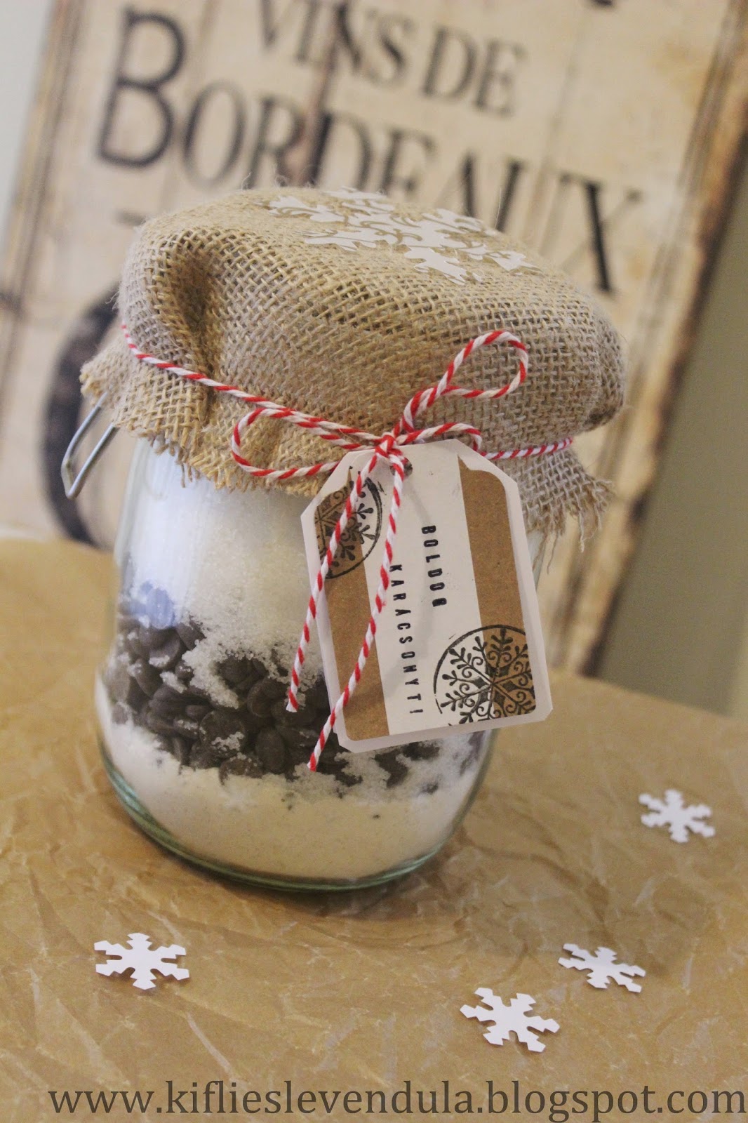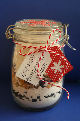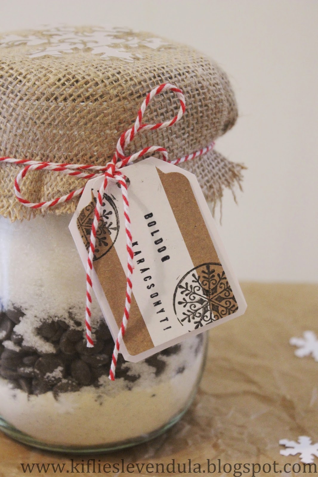 Szeretem az üvegbe zárt sütiket. Kapni is, de adni még inkább - mindig arra gondolok ilyenkor, a megajándékozott hogy fog örülni ennek egy olyan napon, amikor rátör a sütizhetnék, de túl fáradt elmenni a hozzávalókért, vagy egyszerűen csak nincs kedve összeszedegetni ezeket a kamrából. És akkor csak előveszi a tőlem kapott, üvegbe zárt sütit, amihez mindössze tojást és vajat kell tennie, és alig pár perces munkával nemsokára ott lesz az asztalán az én csodás illatú, testet-lelket melengető ajándékom. Ez egy nagyon, nagyon jó érzés tud lenni, főleg amióta az egyik barátnőm azt mondta, egyszer, amikor teljesen kizsigerelve ért haza a munkából, az életét mentette meg az üveges csokis sütim... azóta még inkább szárnyakat kaptam e téren. :-)