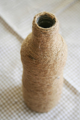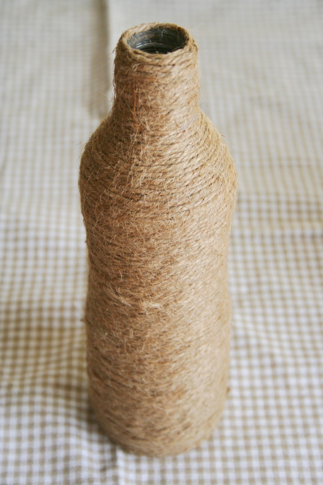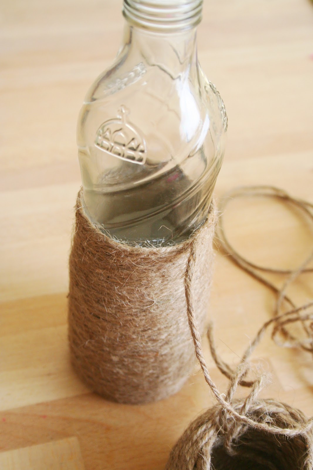 Az üveg tetején az utolsó két sor rögzítéséhez pillanatragasztót érdemes használni, így tökéletesen tartós lesz a spárgaborítás.