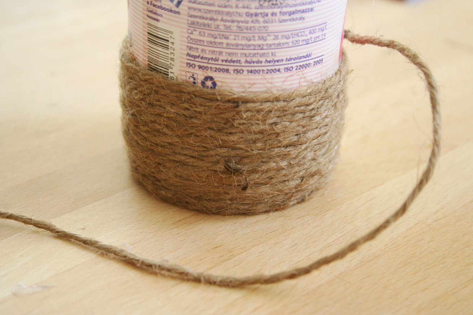 Semmi bonyolult dolgot nem terveztem ezekkel, csak azt, amit már sokezren megvalósítottak előttem: spárgával be akartam tekerni, és ennyi. Gondoltam, majd meglátom, a végeredmény igényel-e még valami pluszt - de végül így lett szép és jó, egyszerűen.