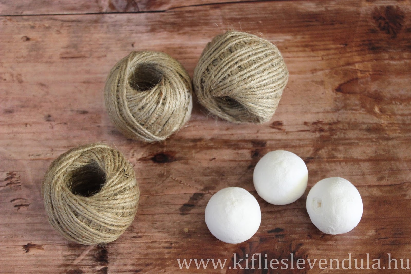 Szóval, az októberi nénikék alapja az egy csomagban lévő három spárgagombolyag volt, amit kiegészítettem három préselt papírgolyóval: