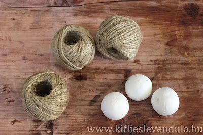 Természetesen a dolog azzal indult, hogy a papírgolyókat ragasztópisztollyal a spárgagombolyagokra rögzítettem: