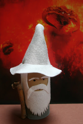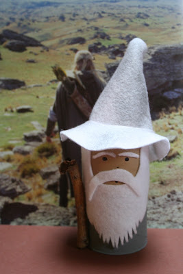 Ezért aztán Gandalf is elkészült papírgurigából. Feltettem a szekrény tetejére, ahonnan belátja a szobát - megnyugtató érzés egy saját fehér mágus a házban :-)